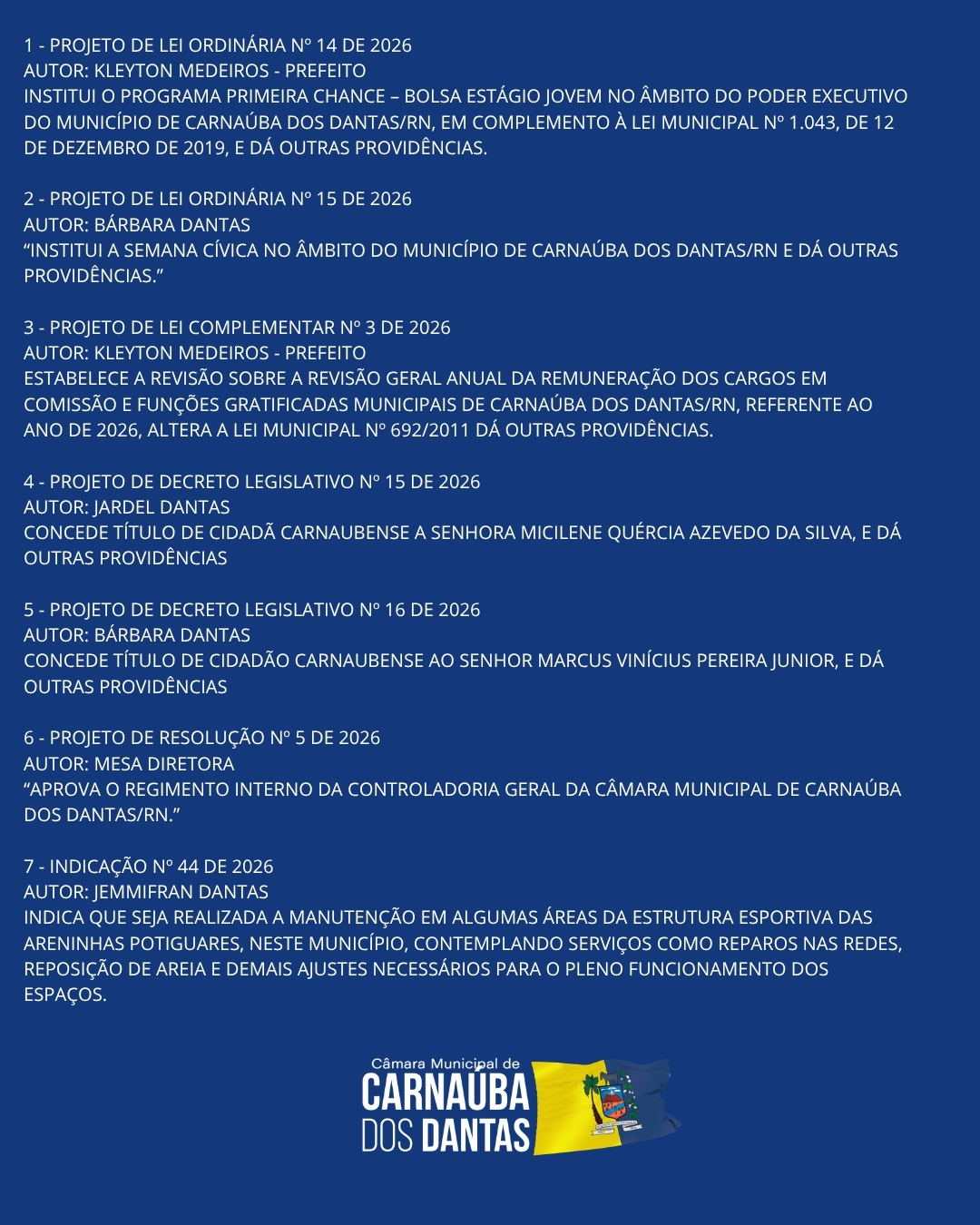 | 27/04/2026 | 📍 Participação e fortalecimento do Legislativo Municipal |